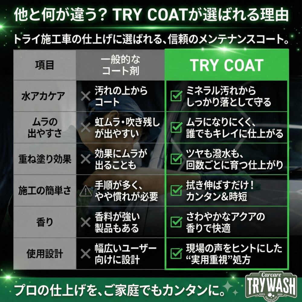 TRY COATは、洗車の最後に“プラス”するだけ。